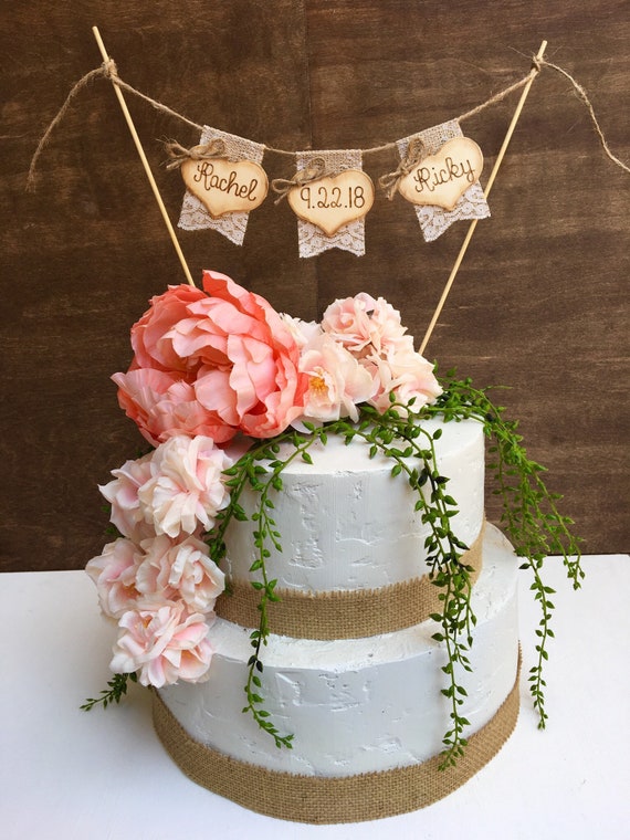 Wedding Cake Topper Burlap Lace Bunting Flags Rustic Cake Etsy