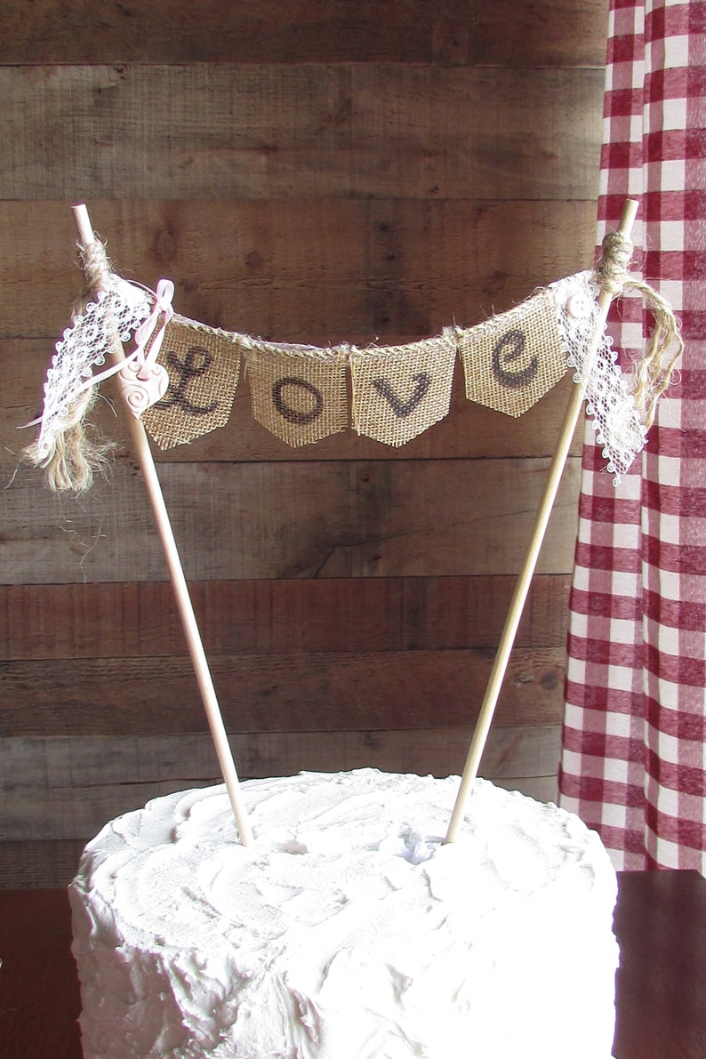 Love Wedding Cake Topper Burlap Lace Pink Ivory Rustic Bunting Etsy