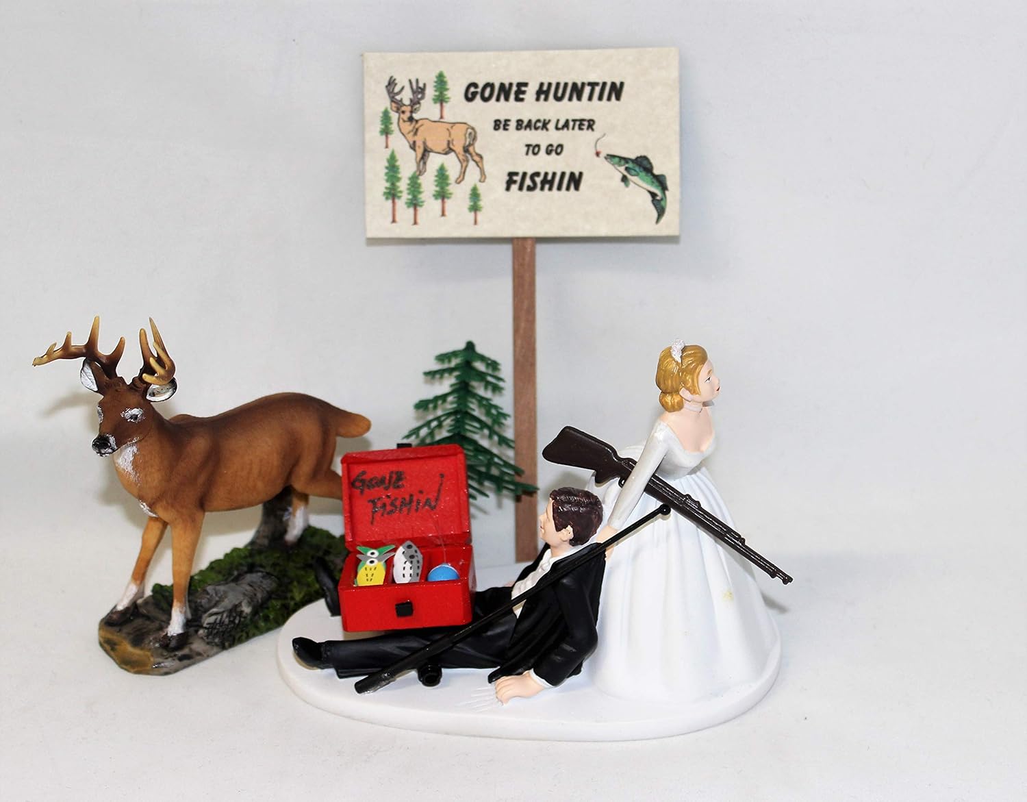 Humorous Redneck Wedding Deer Hunter Hunting Fishing Cake Topper