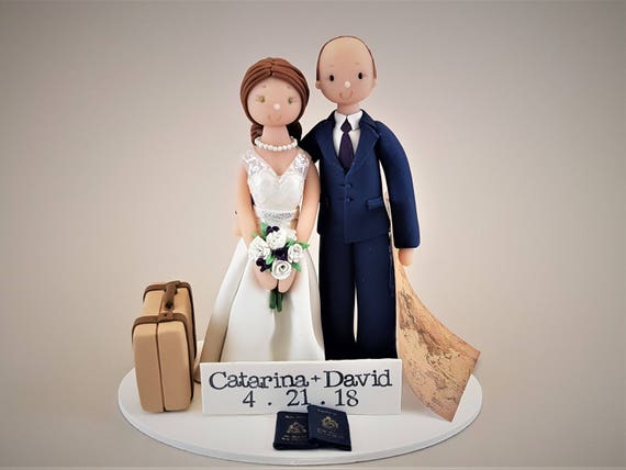 Bride Groom Customized Travel Theme Wedding Cake Topper Etsy