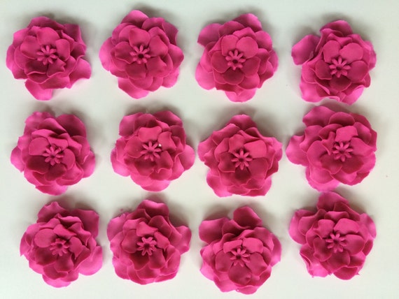 Fuschia Fondant Flowers 12pcs Wedding Cake Topper Fuchsia Etsy