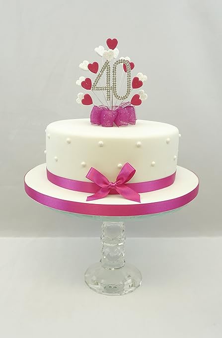 Cake Topper Heart Burst Spray Diamante 21st Birthday Fuchsia Pink