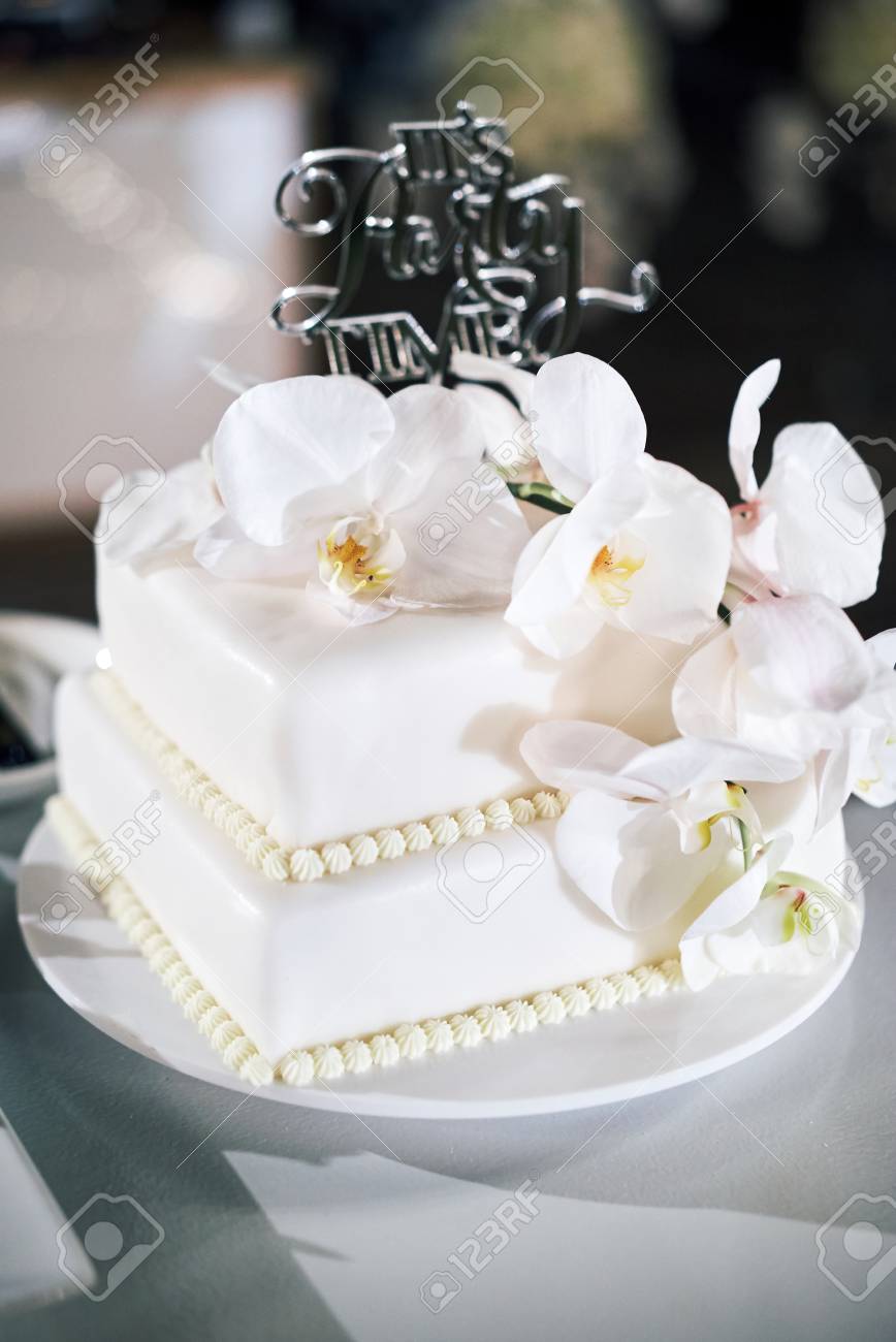 The White Wedding Cake 2 Layers Decorated With White Orchids