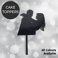 Leaning In Silhouette Acrylic Black Wedding Cake Topper For Sale