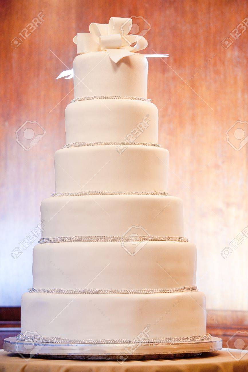 A Huge Six Level White Wedding Cake On Display Stock Photo