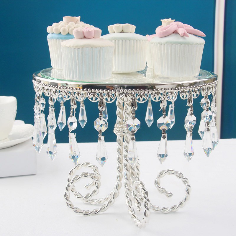 Glass Cake Stand With Silver Metal Base For Party Dessert Table