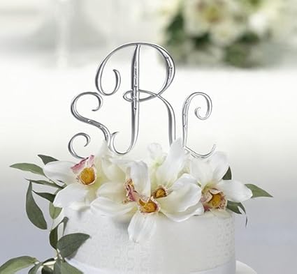Amazon Com Silver Monogram Wedding Cake Toppers Initials With